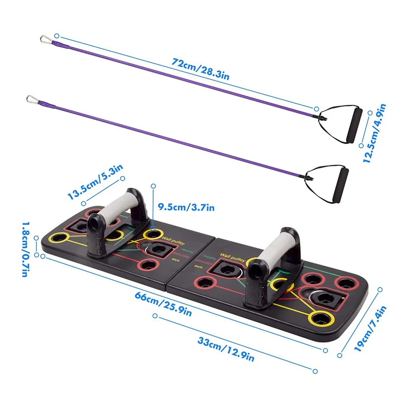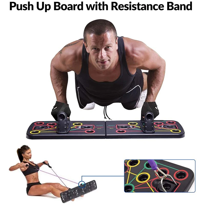 9 in 1 Push Ups Stands Rack Board with Latex Resistance Bands Exercise Muscle Trainer Push up Stand Borad Gym Fitness Equipment