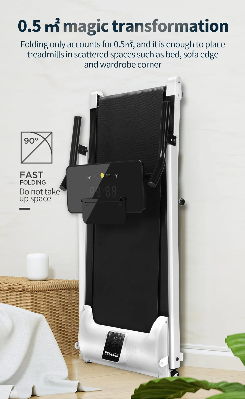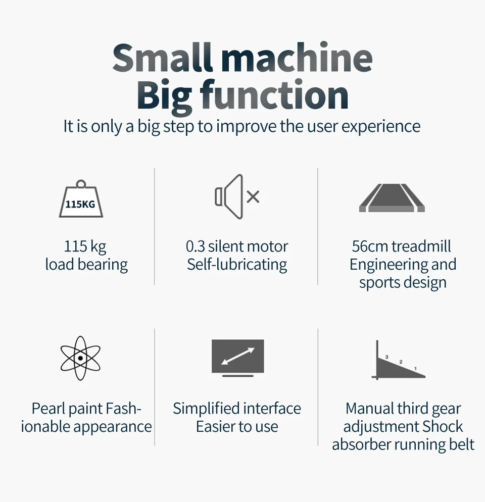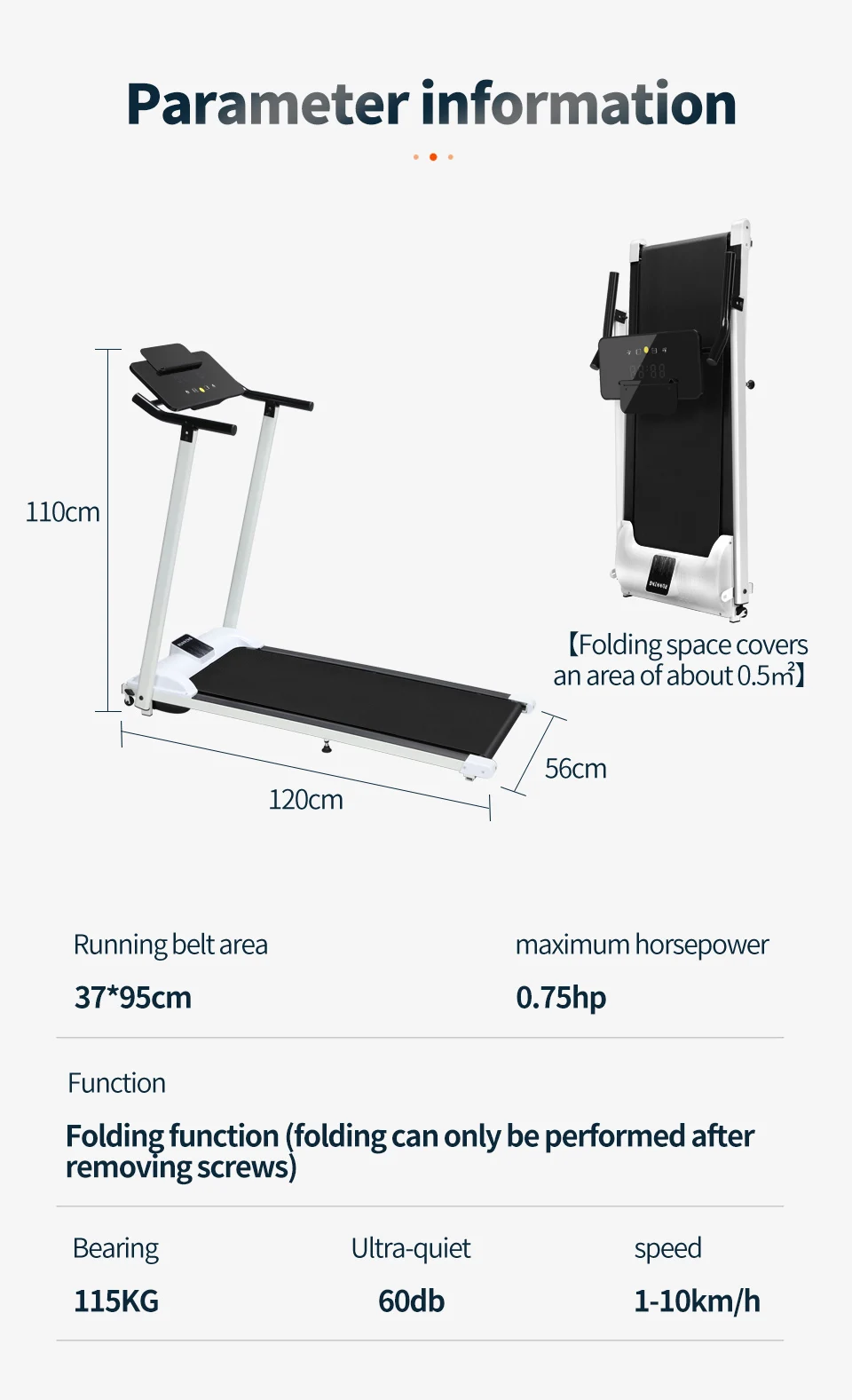 Functions:Fold function(Folding can only be done after the screw is removed. please be aware), time, calories, speed adjustment, distance